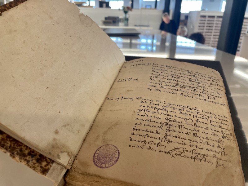 Je vindt het in deel 18. Annick Alink overhandigde deel 18 van de serie Getuigenissen en gichten (Schepenakten) in het bijzijn van Kees Schilder aan Floris Joustra van Stadsarchief Kampen.